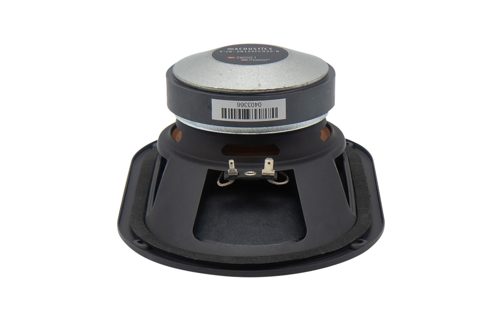 SB Acoustics SB15SFCR39-8 er en 5×8-tommer midbas, der er ideel til højtkvalitets lydsystemer, hvor naturlig gengivelse og lav forvrængning er vigtigt. Den hårde papirkegle giver en balanceret klang med god dæmpning, mens den lavdæmpende gummiophæng forbedrer transientresponsen. Takket være ventileret chassis og optimeret motorsystem kan den klare høj belastning uden kompression og forbliver kølig under drift.