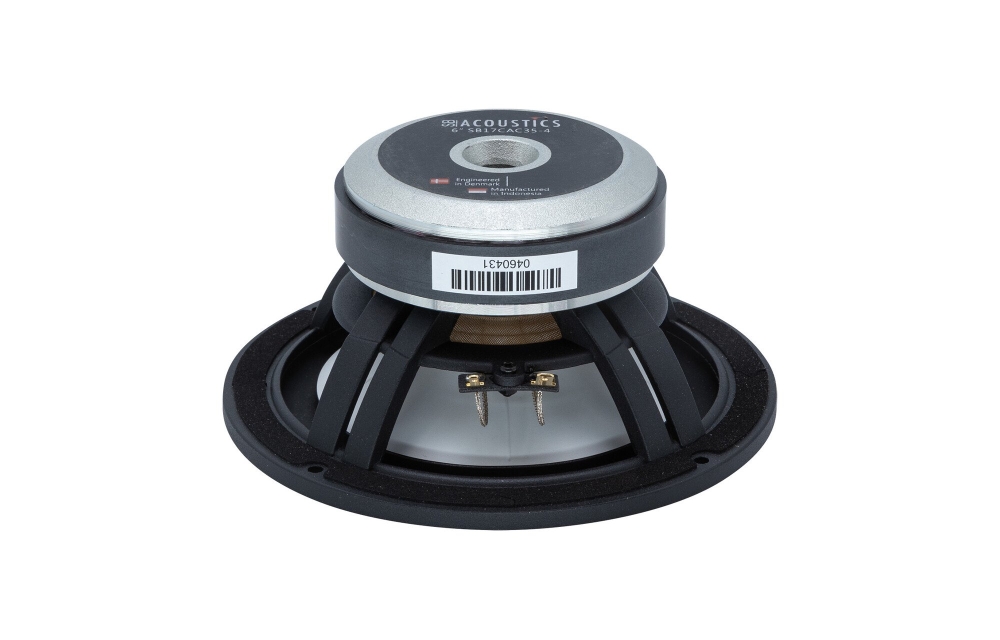 SB Acoustics SB17CAC35-4 er en 6-tommer midbas med keramisk belagt aluminiumskegle, der giver stabil og kontrolleret kolbe bevægelse i bilhøjttalere og lydsystemer. Med et ventileret støbt aluminiumschassis og blød gummiophæng minimerer den kompression og forvrængning, hvilket resulterer i klart og kraftfuldt mellemregister og basgengivelse. Den passer fremragende til systemer, der kræver høj præcision og lav forvrængning ved moderate effektniveauer.
