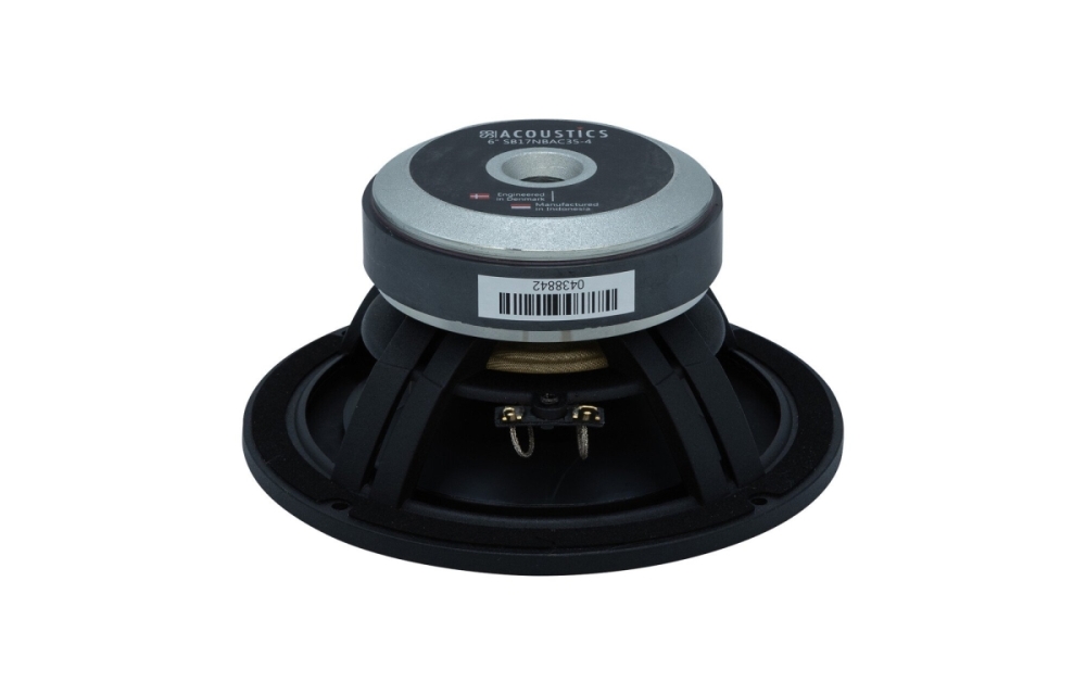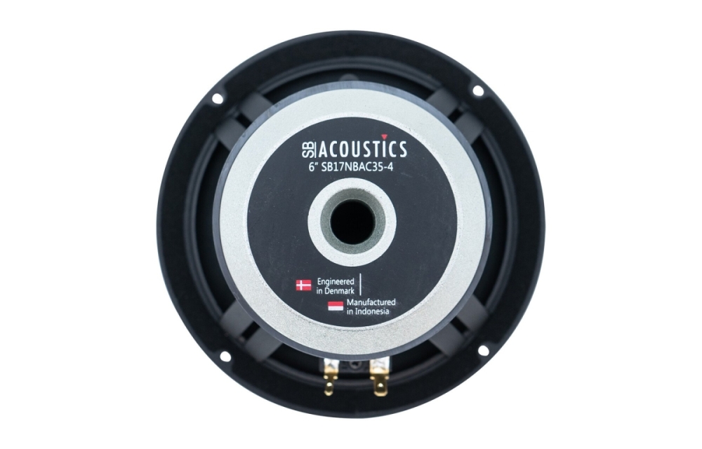 SB Acoustics SB17NBAC35-4 er et 6-tommer bas/mellemtone-element med geometrisk forstærket aluminiumskegle og ventileret støbt aluminiumschassis, som giver stabil membranbevægelse, lav kompression og god transientrespons. Med lav impedans på 4 ohm og en følsomhed på 90 dB passer det godt til mindre baselementer eller mellemtone i to- eller flervejssystemer, hvor klart og kontrolleret lyd ønskes.
