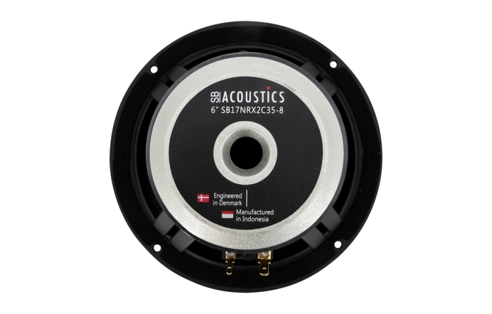 SB Acoustics SB17NRX2C35-8 er en 171 mm (6,5") midbas i Norex-serien, som passer til både hjemme- og billyd. Elementet har en stiv membran af naturlige fibre og en blød gummiophængning, der giver lav forvrængning og hurtig impulsrespons. Den ventilerede aluminiumsramme og polstykke reducerer kompression og forbedrer kølingen, hvilket gør, at elementet kan klare højere effekter med stabil ydeevne og klart, naturligt lyd.