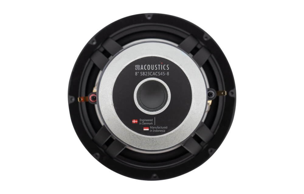 SB Acoustics SB23CACS45-8 er en 8-tommer bas/mellemtone med keramisk belagt aluminiumscone, der giver høj stivhed og lav forvrængning. Den ventilerede kurv og optimerede motorsystem sikrer stabil ydeevne selv ved høje lydniveauer. Med 8 ohms impedans og 88,5 dB følsomhed passer den fremragende til kraftfulde og kontrollerede lydsystemer i både hjemmebiograf og hi-fi.