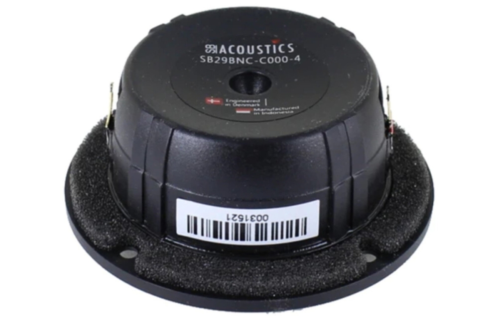 SB29BNC-C000-4 har en frontplade med diameter 72 mm og en indbygningsdiameter på 63 mm, hvilket gør den nem at montere i standardiserede diskantbeslag. Monteringsdybden er cirka 33,6 mm, hvilket passer til de fleste konstruktioner uden at fylde for meget. Diskanten er beregnet til delefrekvenser omkring 2600 Hz med et 12 dB/oktav højpasfilter, hvilket gør den kompatibel med de fleste mellemtone- og midbasenheder i avancerede højttalersystemer.