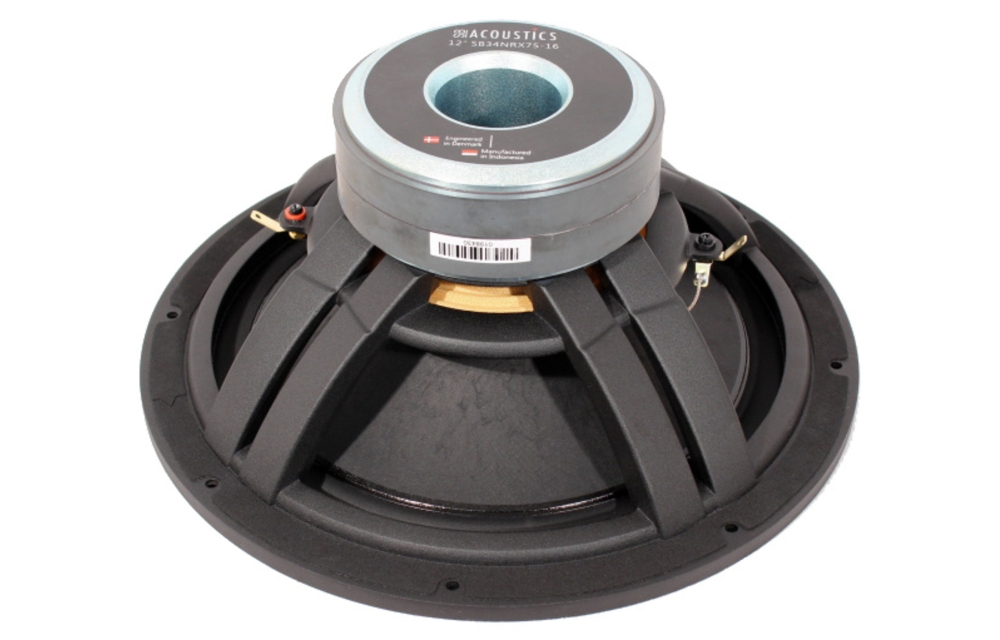SB34NRX75-16 har en hård papirkonus, der giver naturlig og kontrolleret basgengivelse. Den høje impedans gør den egnet til specialbyggede systemer, der kræver 16 Ω, mens den lave resonansfrekvens og store membranflade giver dyb og kraftfuld bas uden port. Gummiringen er optimeret til lav dæmpning, hvilket forbedrer dynamikken og følsomheden i basregisteret.