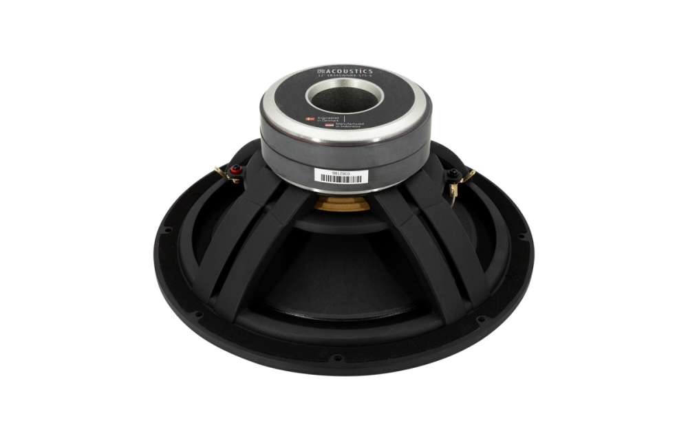 Elementet har standardmål med et membranareal på cirka 462 cm² og skruehuller i henhold til databladet, hvilket gør det nemt at integrere i skræddersyede kabinetter eller opgraderinger af eksisterende systemer. Monteringsdybden og frontdiameteren er tilpasset til at passe de fleste 12-tommer installationer, både i hjemmebiografer og bilprojekter. Den nominelle impedans på 6 Ω gør det nemt at matche med mange forstærkere.