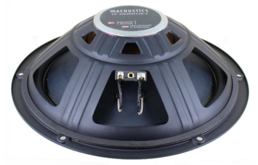 SB Acoustics SW26SFC38-4 er en 10-tommer lavprofil subwoofer, der passer i trange højtalerkasser og leverer dyb, kraftfuld bas. Med sin hårdt pressede ventilerede papkonus og inverterede gummiophæng får du stabil bevægelse og lav kompression, hvilket giver ren og effektiv basgengivelse. Den symmetriske ophængning og den stablede neodymmotor med blød begrænsning bidrager til høj ydeevne og lav forvrængning, mens den ikke-ledende glasfiberspoleform mindsker intern dæmpning for bedre lydkvalitet.