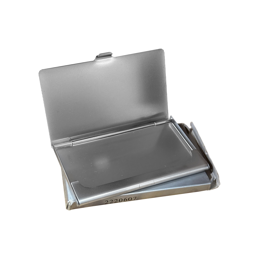 Snygg kortholder i metal med Rockford Fosgate-logo.