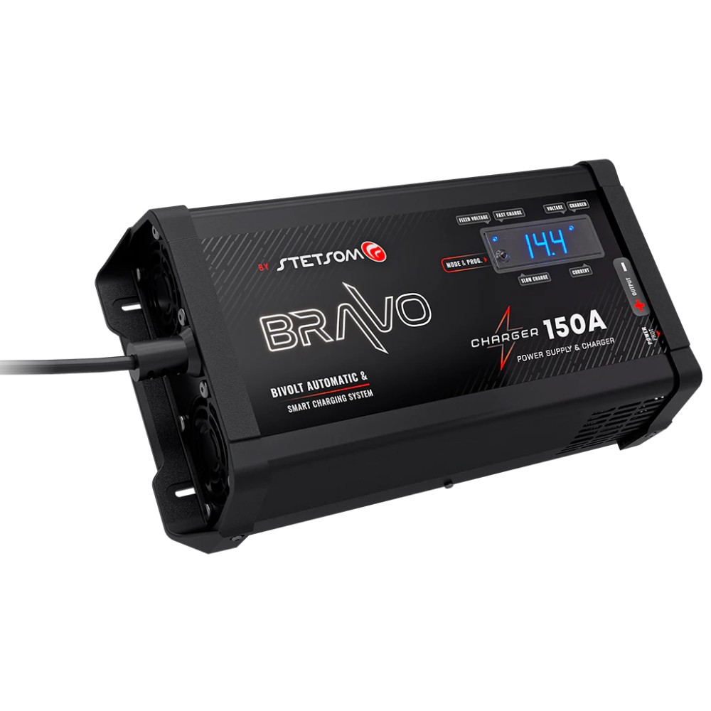Stetsom BRAVO Charger 150A er en intelligent strømforsyning udviklet til både at oplade batterier og drive strømtunge bilstereoanlæg uden afbrydelser. Med smart ladekontrol beskyttes batterierne mod unødvendigt slid, samtidig med at systemet får stabil strøm selv under drift. Dette gør BRAVO Charger til et pålideligt knudepunkt i installationer, hvor høj effekt, lang driftstid og sikker opladning er afgørende.