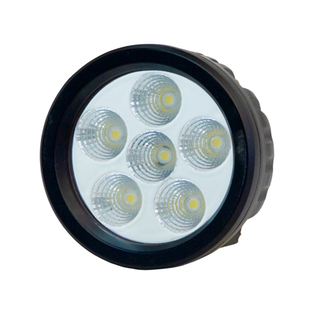 ADR- og E-godkendt rund LED-lygte med fem dioder, fungerer som arbejds- og baglygte til sikker biltransport.