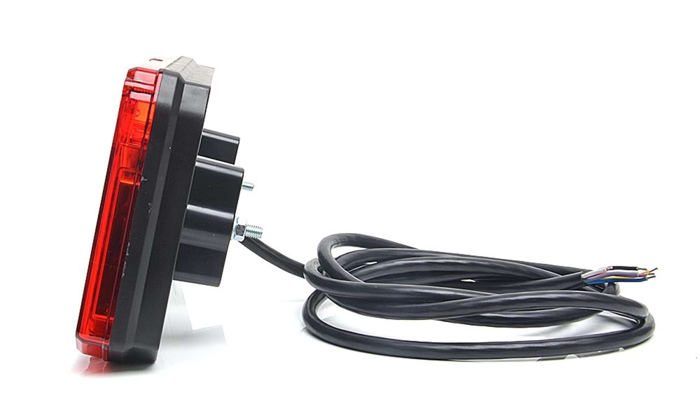 Rektangulær høj LED baglampe med fem funktioner: baglys, bremselys, blinklys, tåge- og baglys.