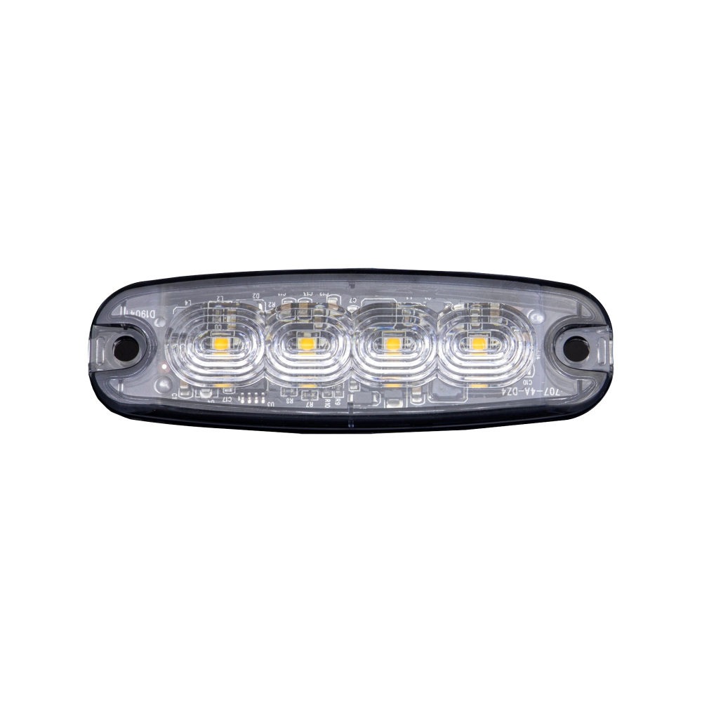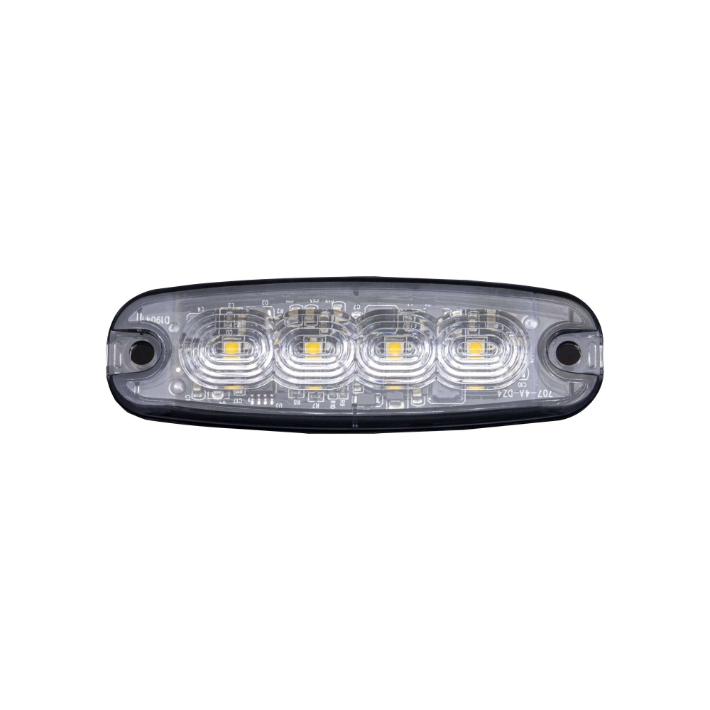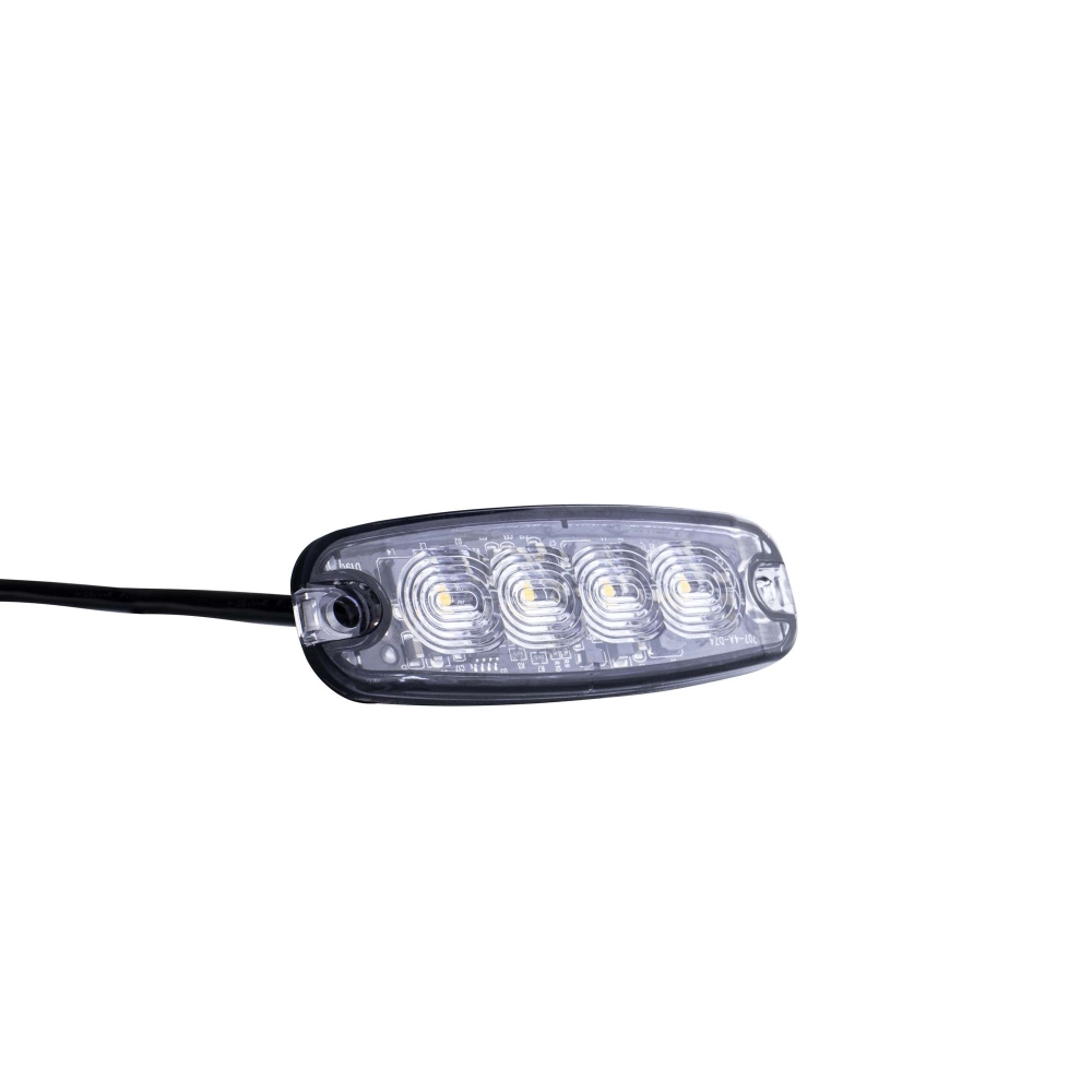 Lynlys i en ekstremt slank udgave med 4 LED'er. Rund tiltalende form med usynlige kanter, der smelter godt ind i køretøjets underlag. Design og funktion i ét produkt. ECE R65, EMC ECE R10. 400 mm kabel. To andre størrelser indgår i serien – 3 og 6 LED.