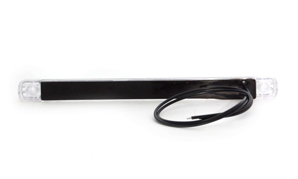 Aflang LED sidemarkering med 9 dioder og klart glas, robust design for holdbarhed og høj kvalitet.