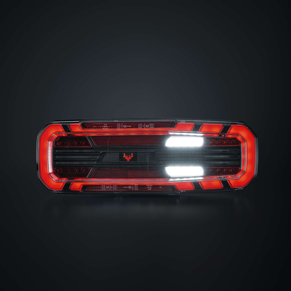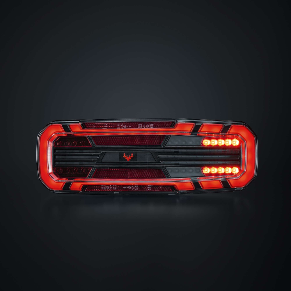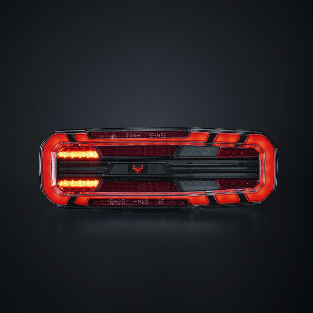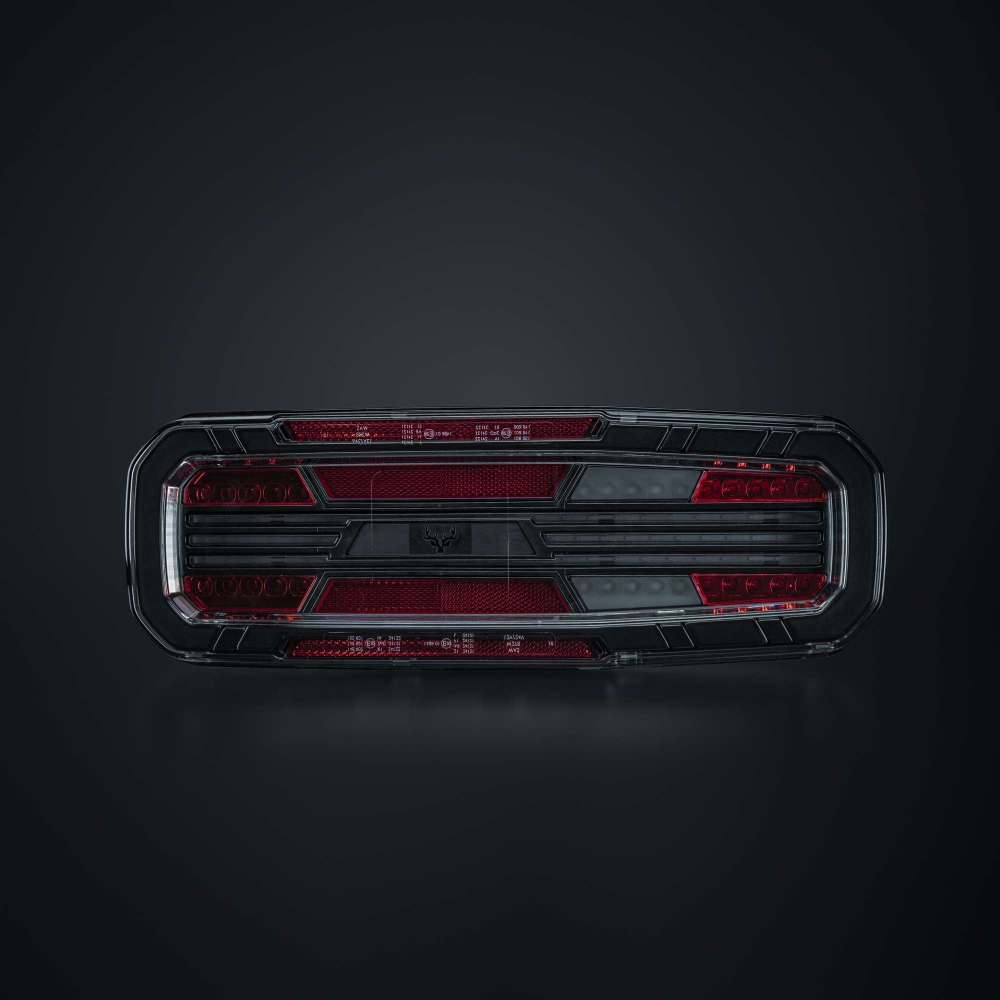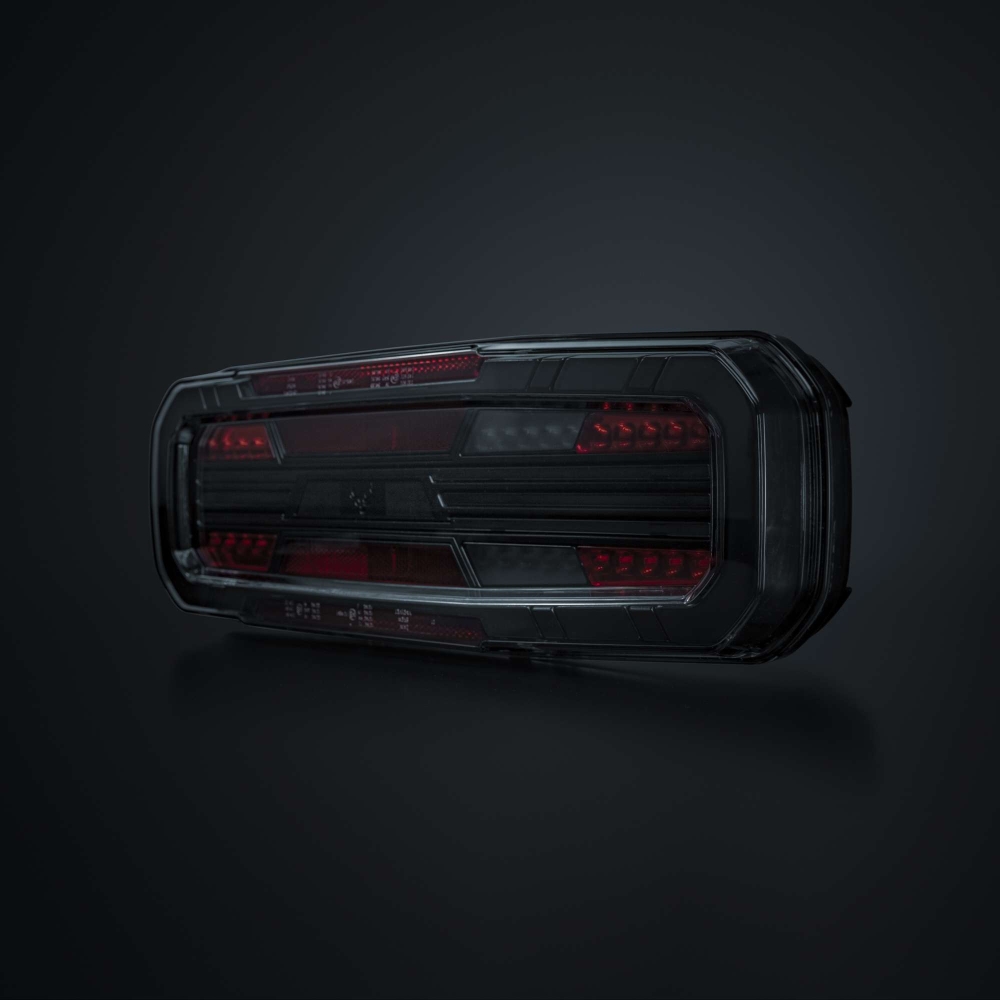 Dette fuldstore baglys med fem funktioner findes til lastbil og trailer, og er E-godkendt R148/R150. Med blinklys, baklys samt bag-, dæmp- og bremselys får du alt, hvad du behøver i en solid pakke. Designet er robust men strømlinet, med klar linse og mørke detaljer. Det har en gennemgående følelse af kvalitet, hvor hver detalje tæller.