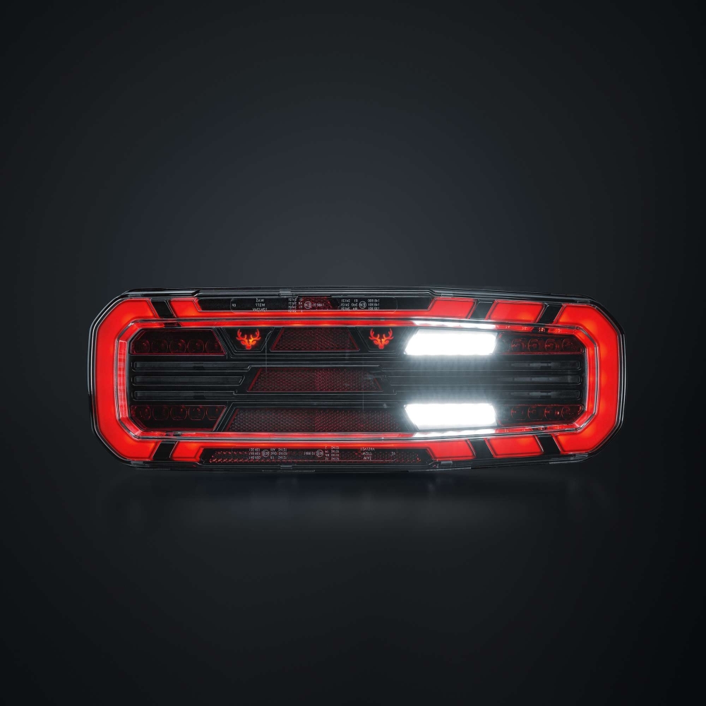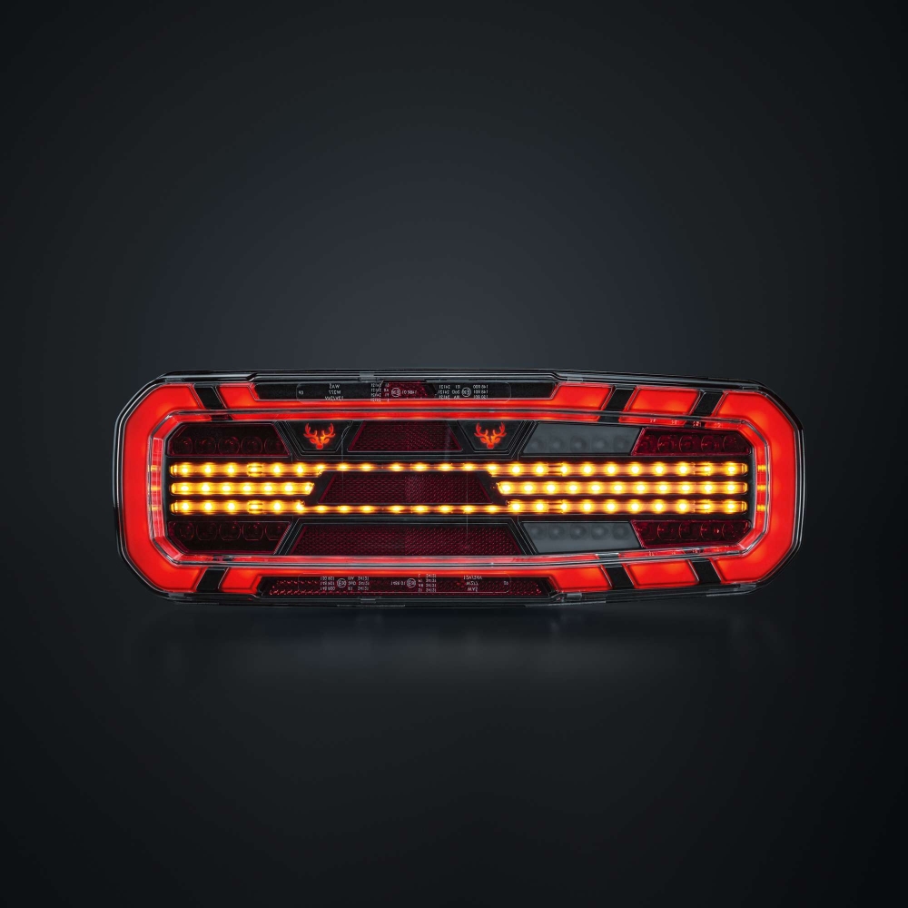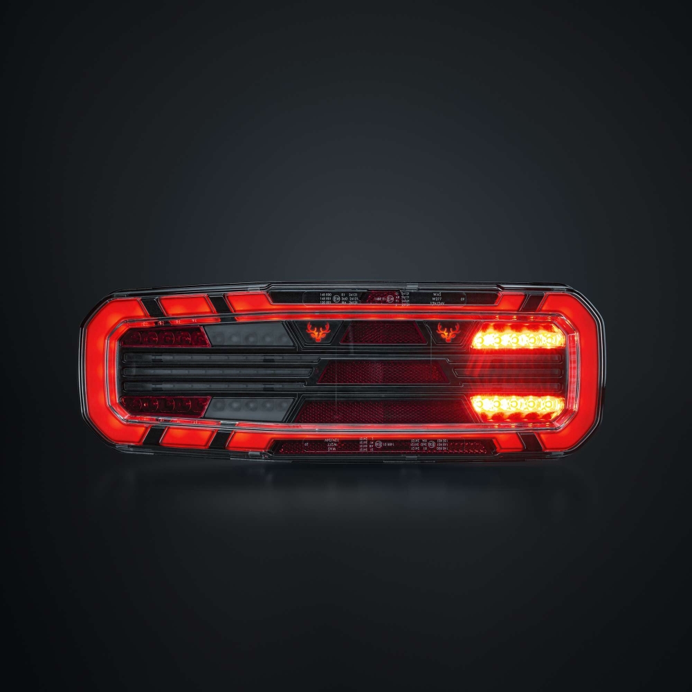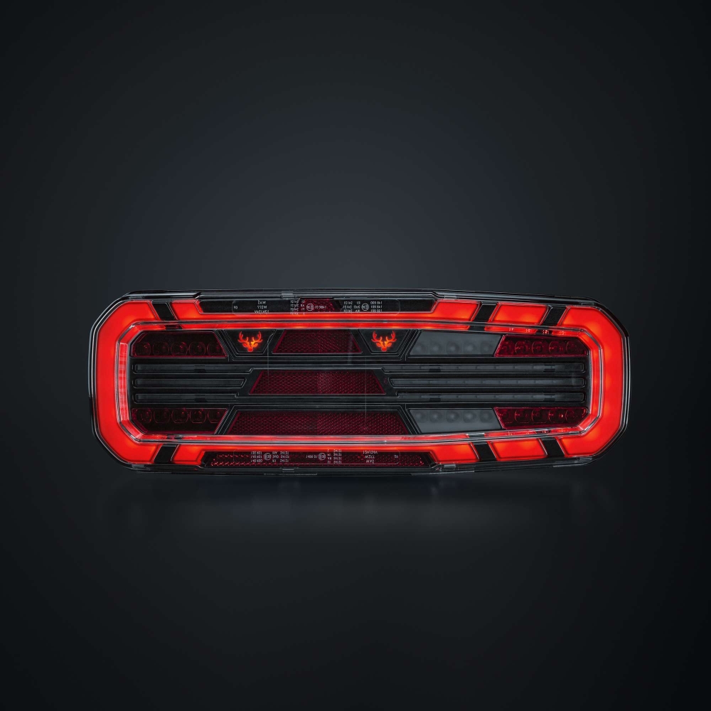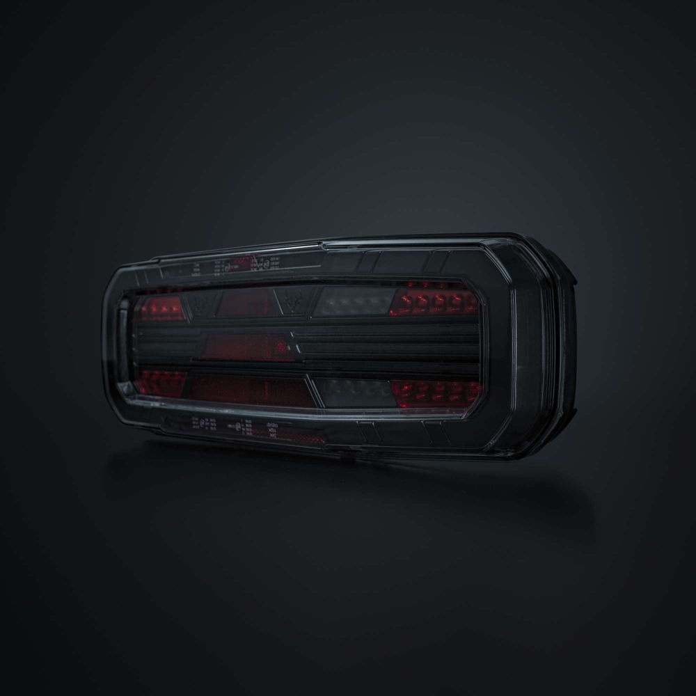 Dette fuldstændige baglys med fem funktioner findes til lastbil og trailer, og er E-godkendt R148/R150. Med blinklys, baklys samt bag-, dim- og bremselys får du alt, hvad du behøver i en solid pakke. Designet er robust men strømlinet, med klart linse og mørke detaljer. Det har en gennemgående følelse af kvalitet, hvor hver detalje tæller.