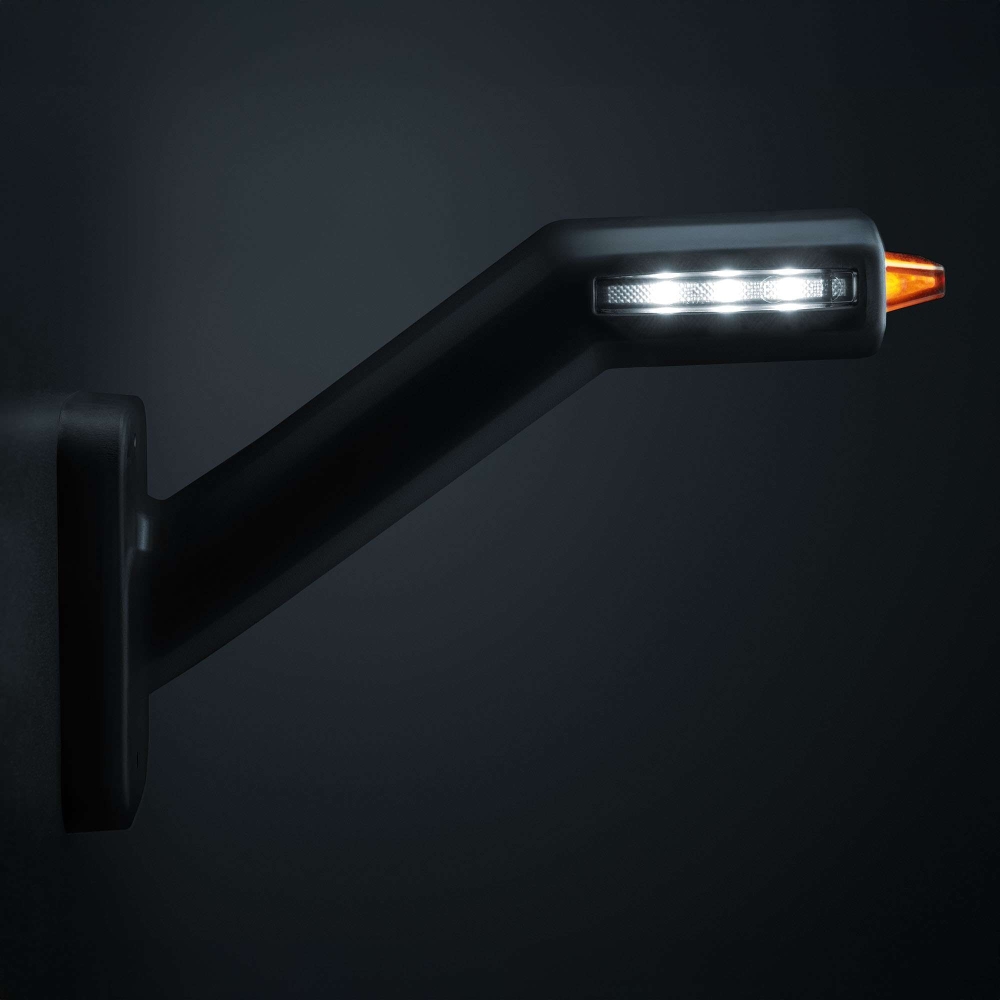 Freedom light guide er en holdbar gummiarm med moderne mørk design. De mørke linser smelter ind i den fleksible gummiarm, når lyset ikke er i brug. Med tre positionslys får du en smart og effektiv belysning. Når lyset er tændt, giver det orange, hvidt og rødt lys en intens glød for at maksimere synlighed og sikkerhed.