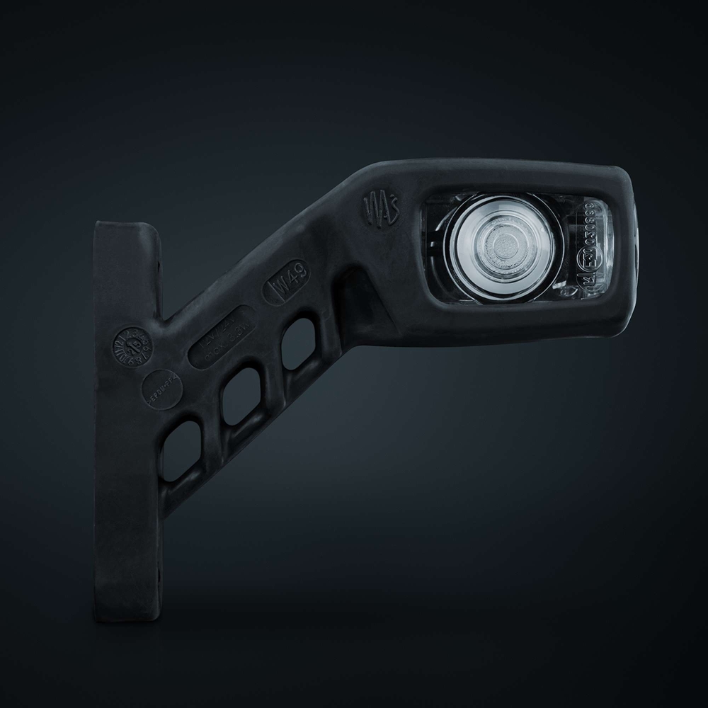 Kort gummiarm (højre) med positionslys og sidemarkering. Armen er let at montere og har klart glas, der giver en flot finish. Et "alt-i-ét" alternativ, der bringer kvalitet og enkelhed med sig. Produktblad