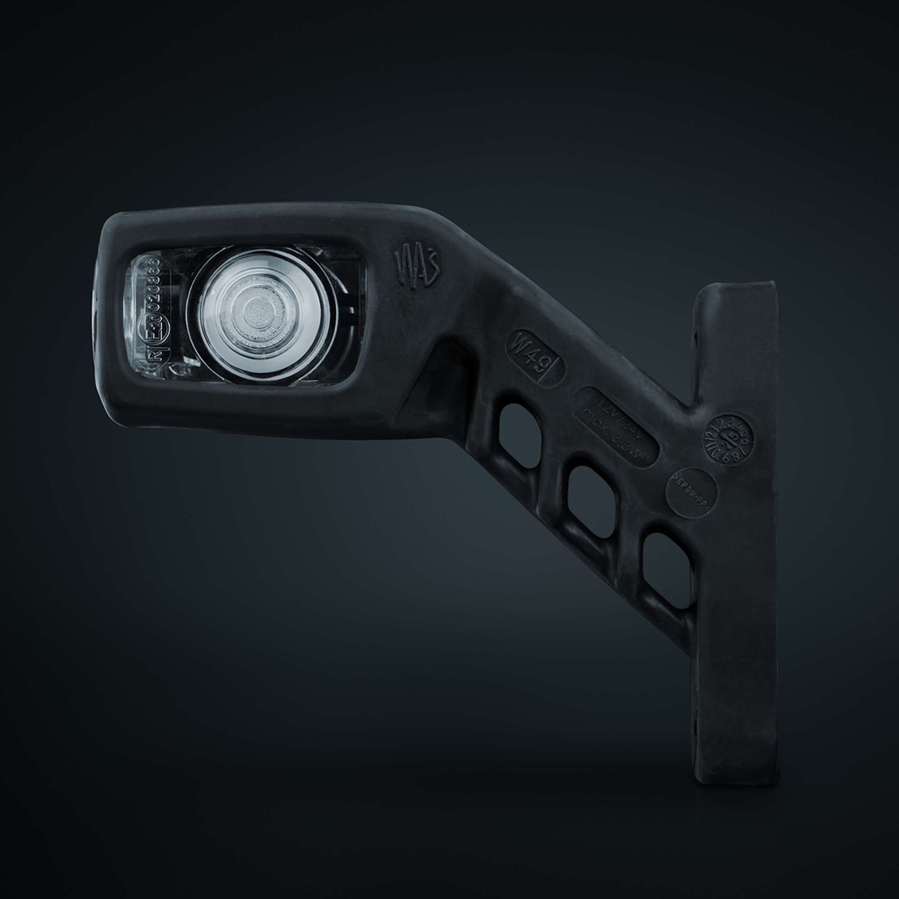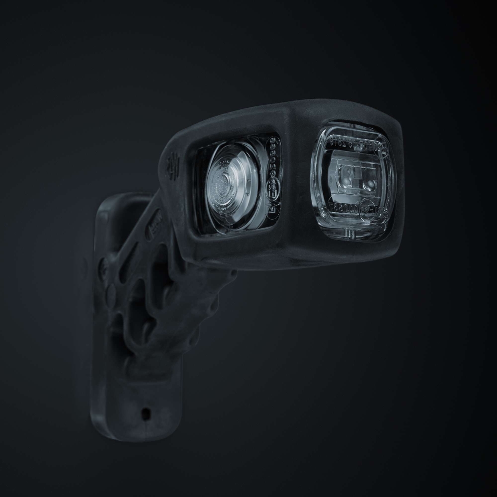 Kort gummiarm (venstre) med positionslys og sidesignaler. Armen er let at montere og har klart glas, som giver en flot finish. Et "alt-i-en løsning", der bringer kvalitet og enkelhed med sig.Produktblad