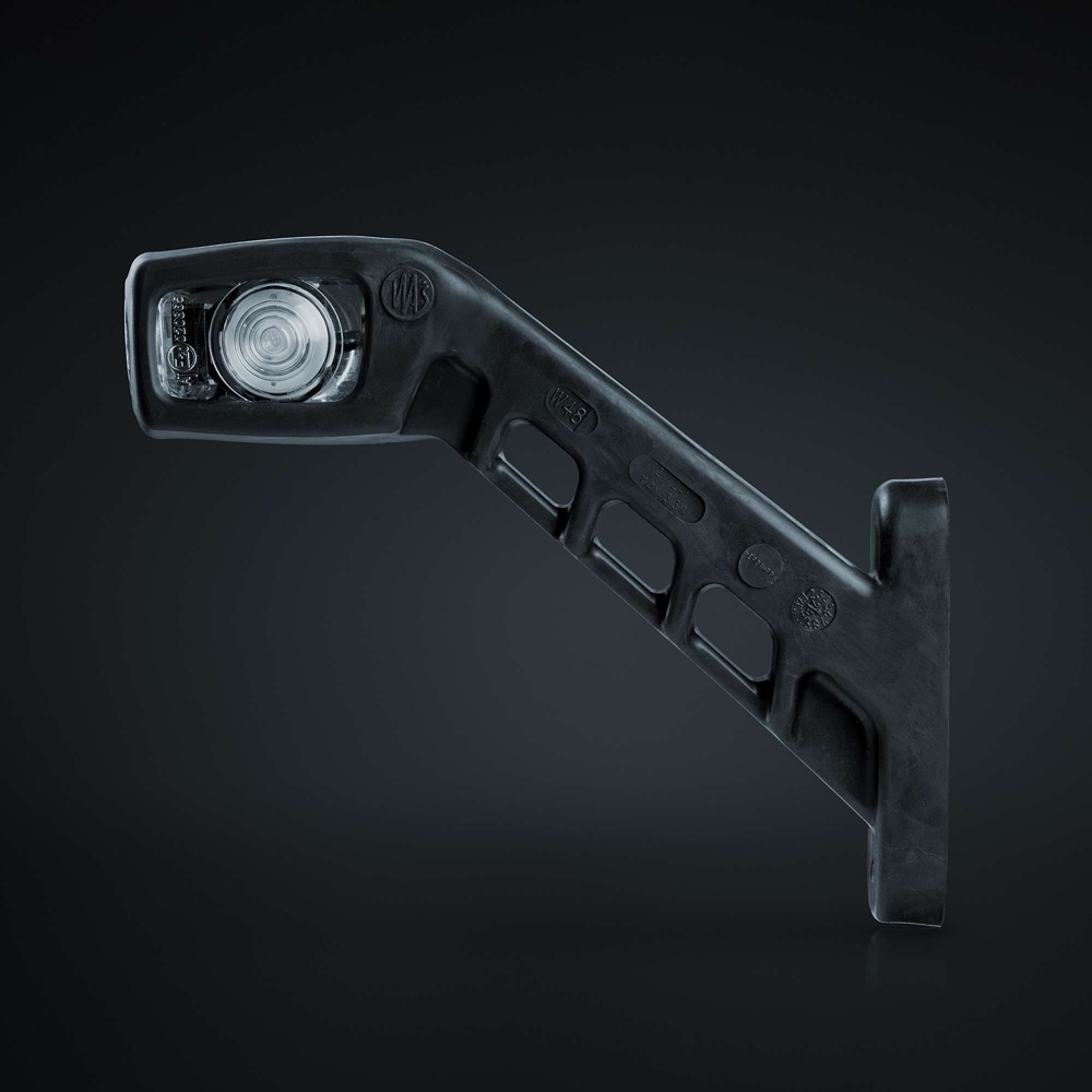 Lang gummiarm (højre) med positionslys og sidemarkering. Armen er let at montere og har klart glas, der giver en flot finish. Et »alt-i-ét-Alternativ«, der bringer kvalitet og enkelhed med sig.Produktblad