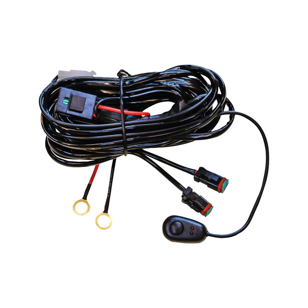 12V kabelsæt, der er tilpasset til to ekstraforlygter med et strømforbrug på maksimalt 2x100W med DT-kontakt, og maksimalt 2x180W hvis DT-kontakten klippes. Kabelsættet består af et 40A relæ, 30A sikring og kabler (1,5mm²) med to DT2-kontakter. Kabelsættet er kompatibelt med de fleste køretøjer og leveres med en ON/OFF-knap. Hvis man vælger ikke at bruge ON/OFF-knappen, men hellere vil tage styrestrøm fra for eksempel bilens nærlys, bruges den blå kabel i ledningssættet. Ved brug med 24 V kræves et separat relæ.