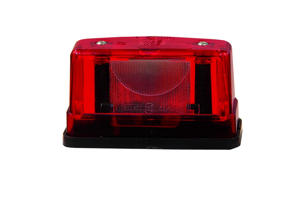Halogen nummerpladelys/positionslys med rektangulær design og rødt glas. Indeholder en glødepære. Produktblad