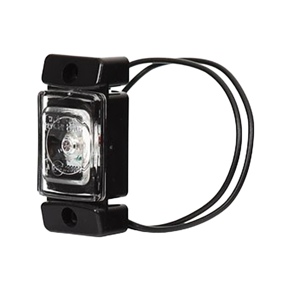 Et hvid positionslys med sort ram, nem at montere og egner sig til forskellige køretøjer. Enkel design og brugervenlig.