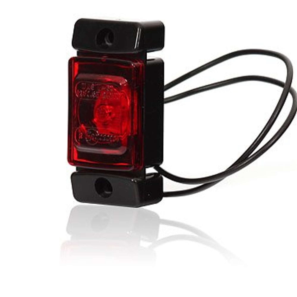 Rødt positionslys med enkel formgivning, den sorte gummiramme muliggør en enkel installationsproces. Produktblad
