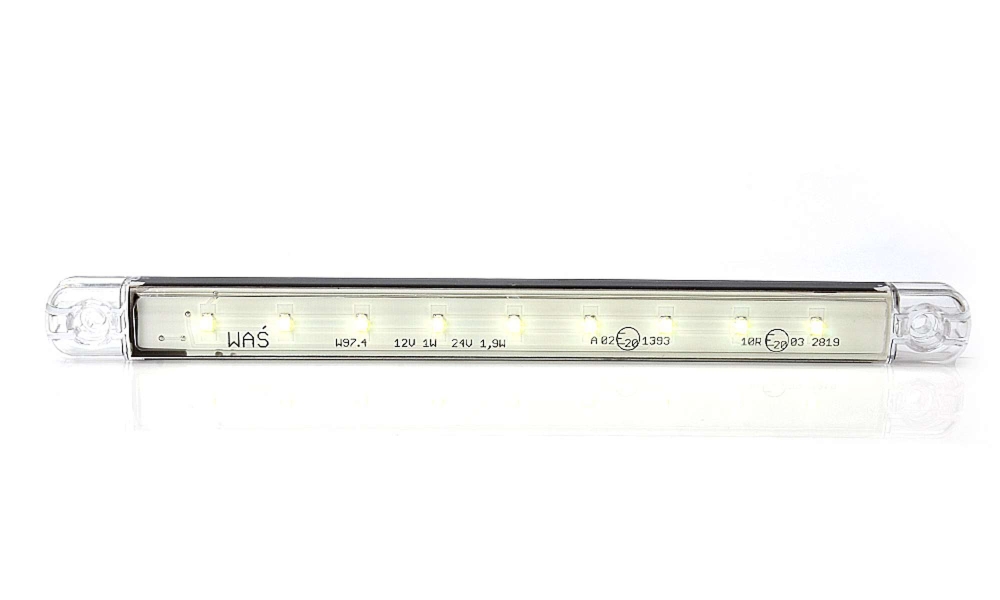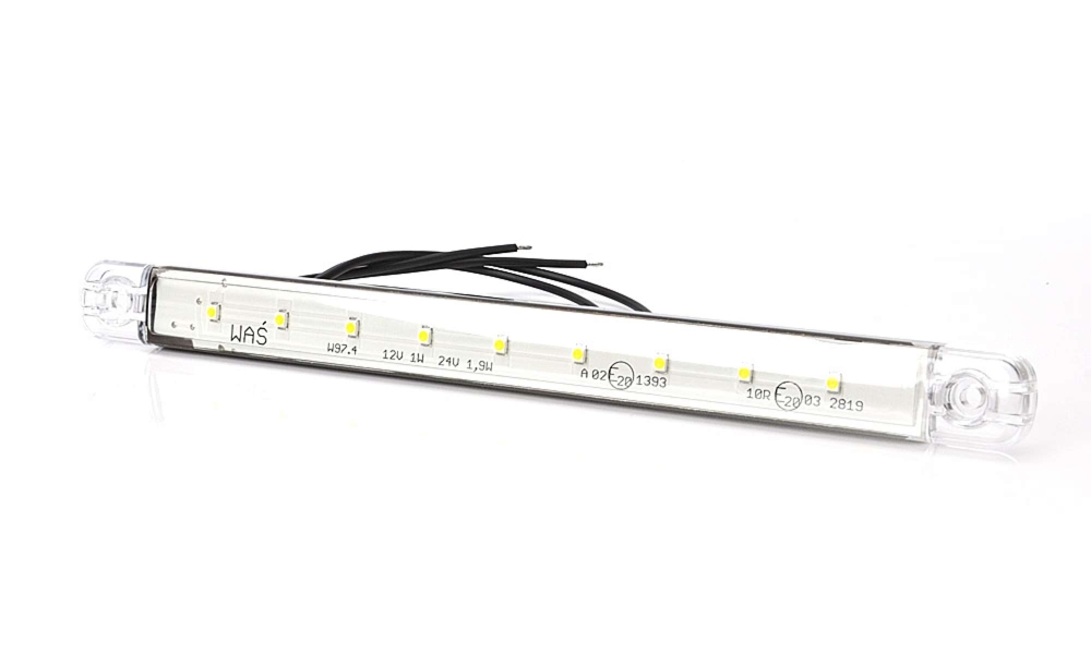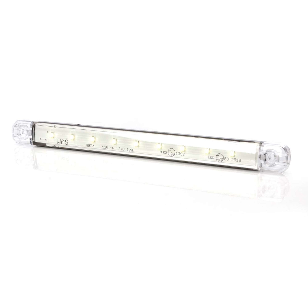 Slankt, langt hvidt LED-positionslys med 9 dioder og klart glas. Designet letter installationsprocessen og gør lampen meget brugervenlig.Produktblad