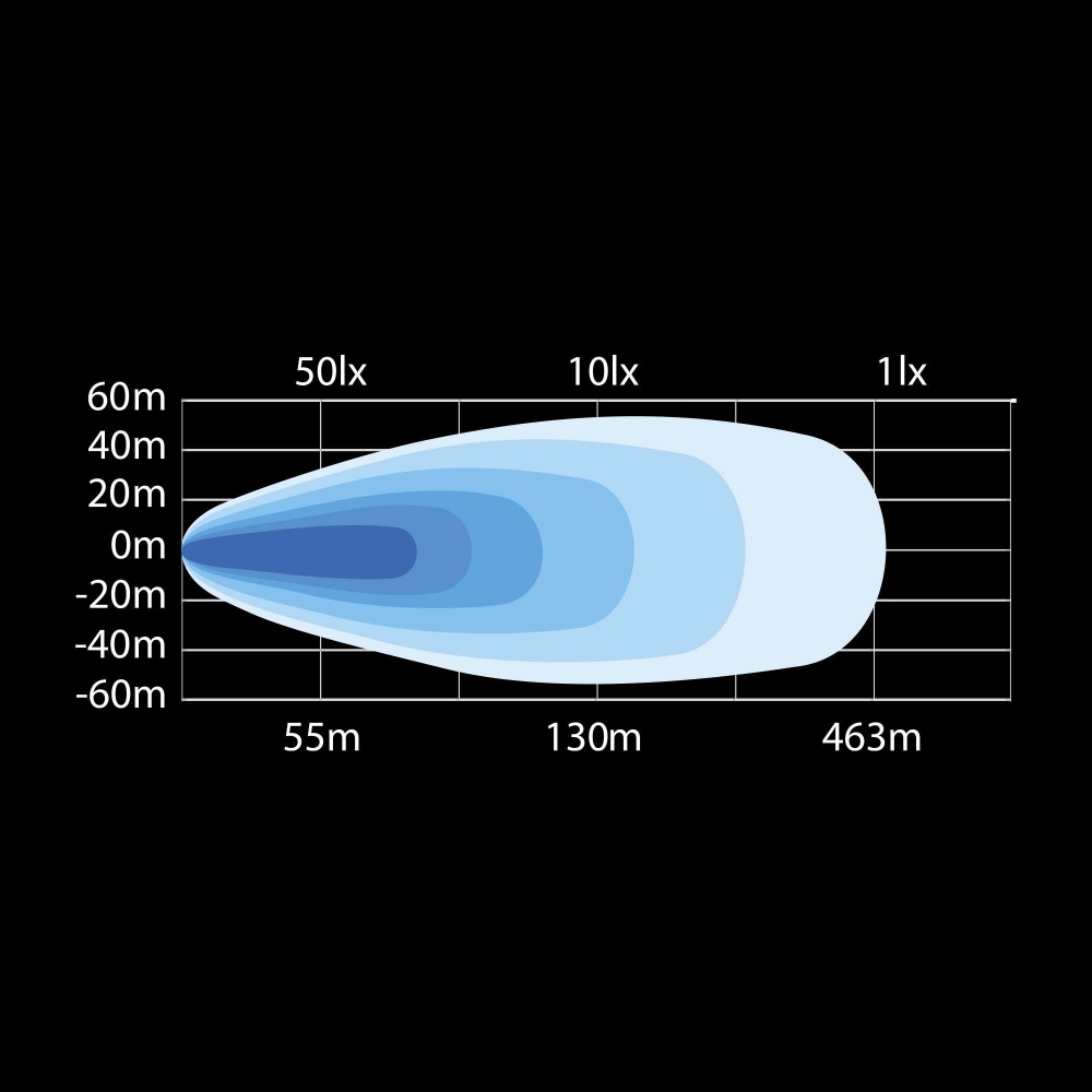 Med 2 stk. 9" flood og 1 stk. 9" spot monteret på en bil får du hele 29.000 faktiske lumen og 1 lux på 1195 meter. Med 6 stk. 9" spot monteret på taget af en lastbil får du 60.000 faktiske lumen og 1 lux på hele 2449 meter.