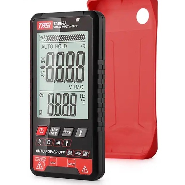 TASI TA804A er et smart multimeter, der gør arbejdet lettere ved at registrere, hvad du måler, og automatisk skifte mellem AC, DC, modstand og frekvens. Det gør, at du kan fokusere på arbejdet uden at dreje på nogen knapper. Den store skærm på 3,5 tommer viser både digitale værdier og en hurtig analog søjle, der giver en klar fornemmelse af ændringer i signalet. Et aftageligt beskyttelseshylster og en stærk LED-spotlight gør den praktisk at bruge på trange eller mørke steder.