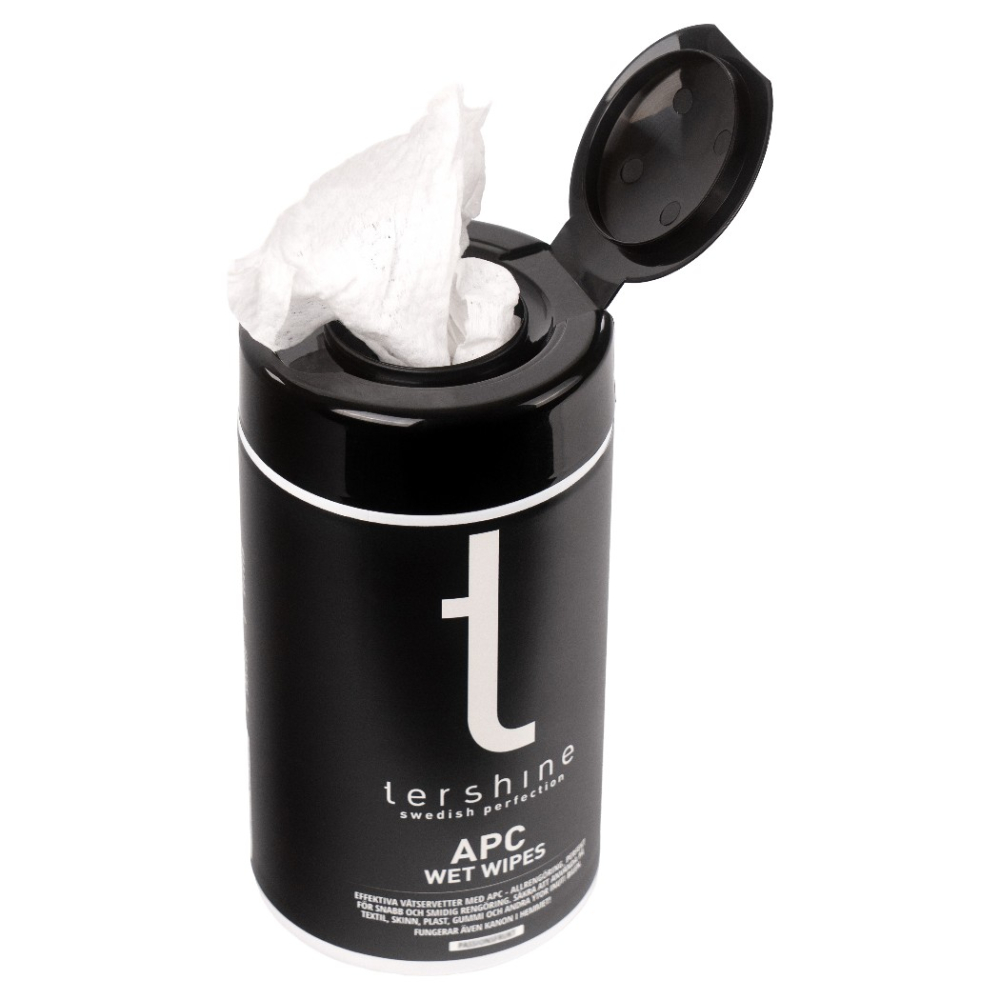 Tershine APC - Vådservietter gør det nemt hurtigt at rengøre bilens interiør eller overflader i hjemmet. Perfekte når du har brug for en praktisk løsning til daglig vedligeholdelse eller hurtig opfriskning.