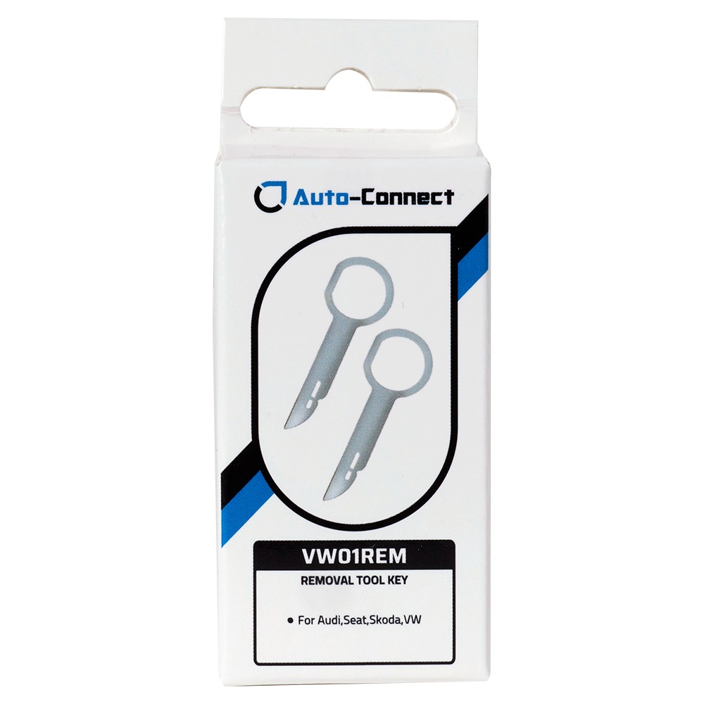 Auto-Connect VW01REM er et par udtagningsnøgler til biler, hvor bilstereoen har horisontale spor. I nogle tilfælde, hvor radioen har 4 spor, er der brug for 2 par nøgler. Brug disse nøgler for nemt at fjerne din fabriksmonterede bilstereo.
