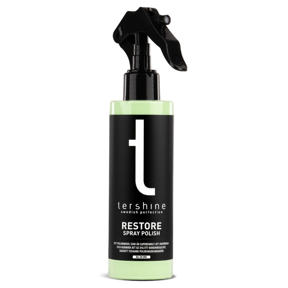 Tershine Restore - Spray Polish er et polermiddel, der er supernemt at bruge og vil give dig et fantastisk resultat, uanset tidligere poleringsfærdigheder. Produktet kan både fjerne hårde ridser helt ned til 1000 grit og kan også afsluttes som et finishmiddel.
